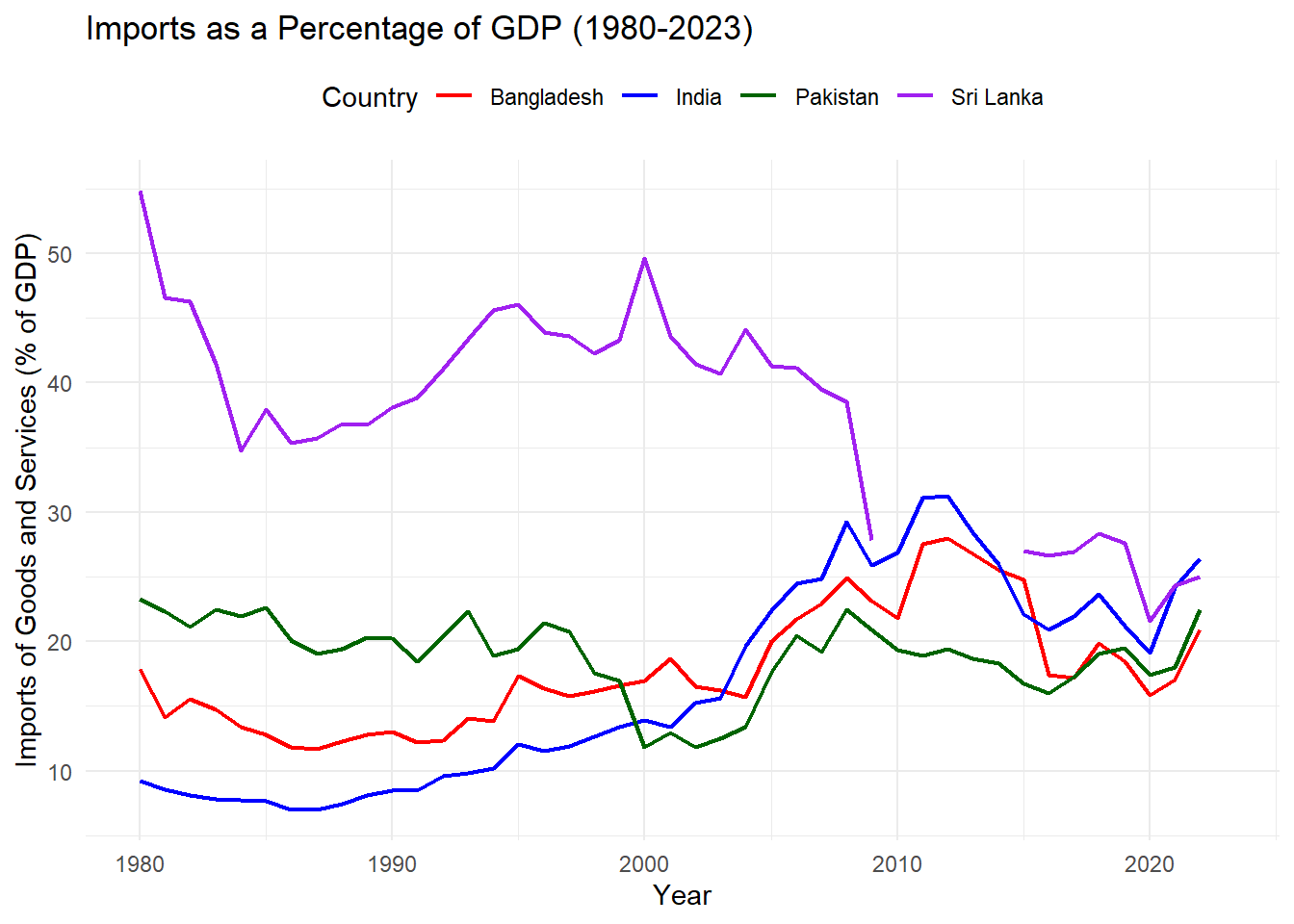 labs(title = "Imports as a Percentage of GDP (1980-2023)",
